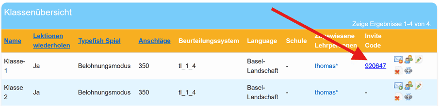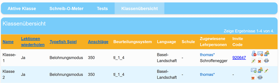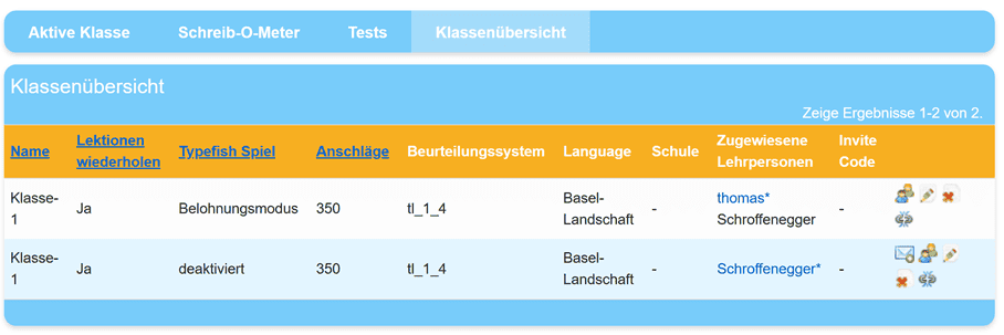 Sie sehen nun in Ihrer Klassenliste auch ihre Gastklasse und können sie entsprechend aufrufen und verwalten.