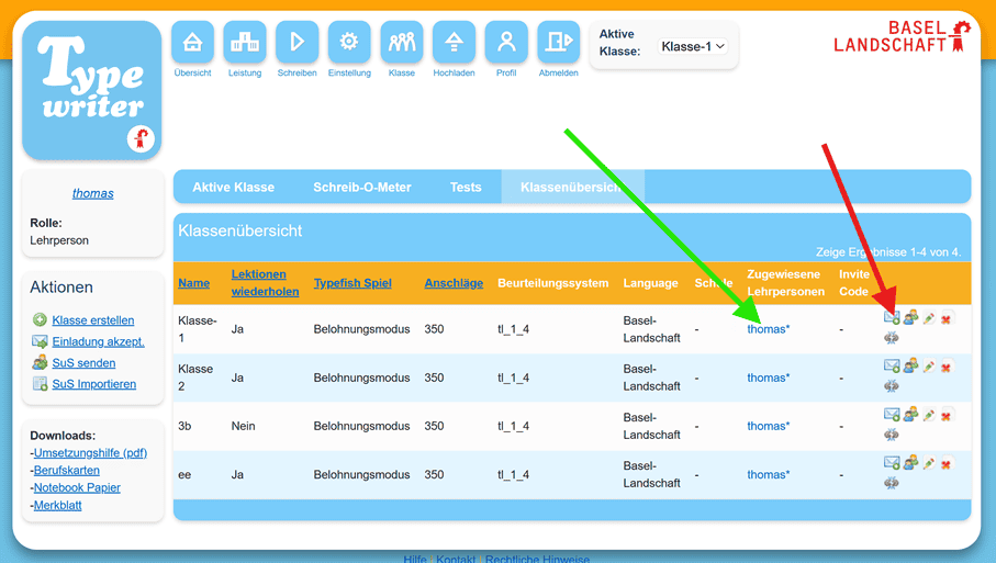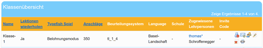 Sobald die Gastlehrperson die Einladung angenommen hat, erscheint sie auch in der Klassenübersicht der einladenden Lehrperson.